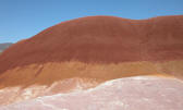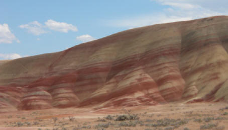 The Orphan, The Boot, The Beasts and The Great Arvee then continued on that 233-mile day – which included a visit to The John Day Painted Hills Unit but not to the John Day Sheep Rock Unit. They saw and walked around hills and mounds of red and gold and green and brown with many layers showing many millions of years of