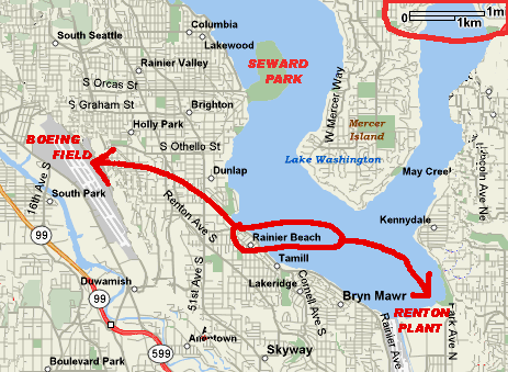 South Seattle-Renton areas, showing Rainier Beach, the Renton Plant and Boeing Field