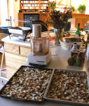 The rotisserie for the turkey, and food processor and pans of dried bread for turkey dressing |