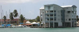 We had a two-story unit with deck in the top unit at the far right, facing the marina and beyond to the Caribbean Sea |