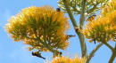 Century Plant blooms filled with Bananaquits and bees eating nectar At night, the Century Plant is also pollinated by bats |