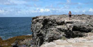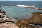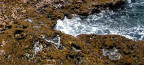 Surf coming up through the holes in the coral reef |