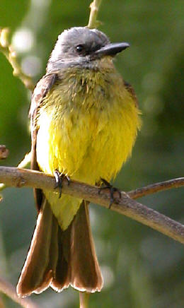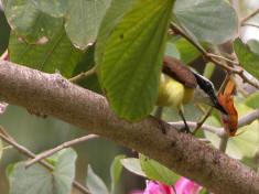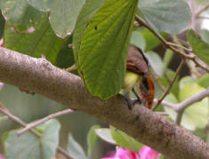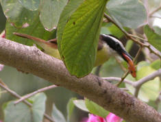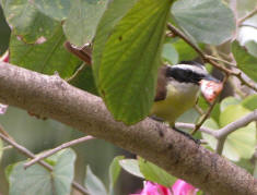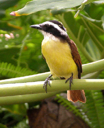 The Great Kiskadee catches a small goldfish from the pond and smacks it over and over again on the branch before eating it |