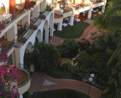 Looking down from our balcony to Andrea Restaurant's outdoor tables