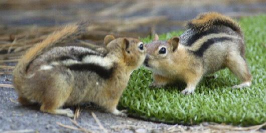 Golden-mantled Ground Squirrels greeting on our RV doormat |